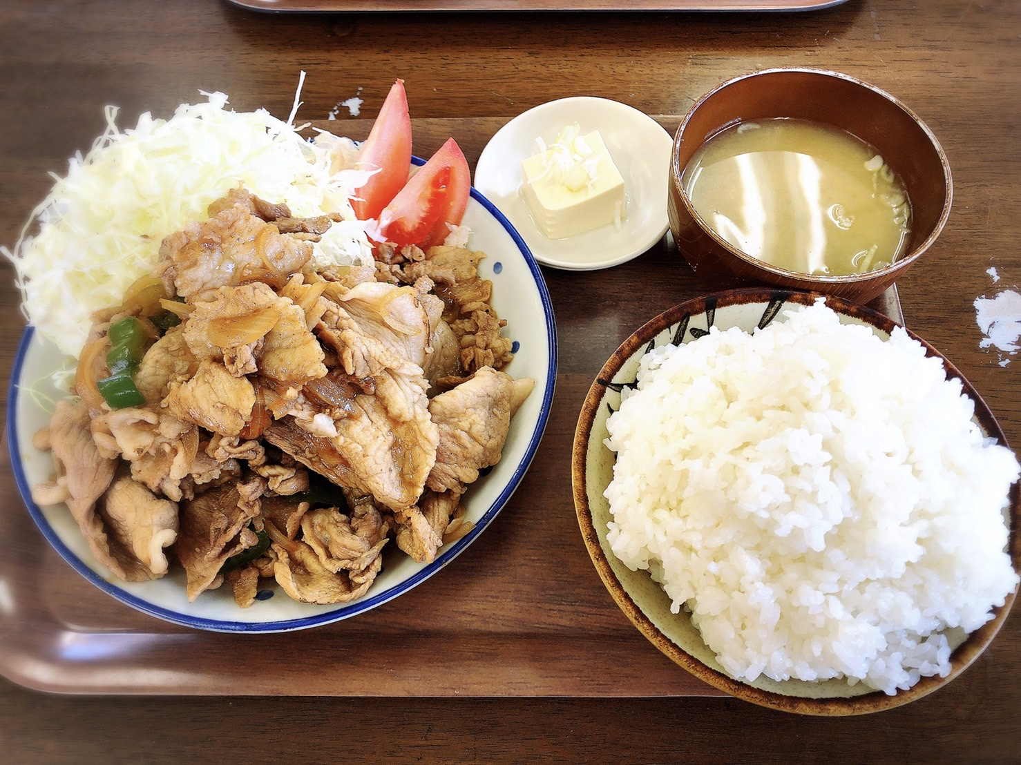 お味噌汁に冷奴、キャベツが付いてますよ。