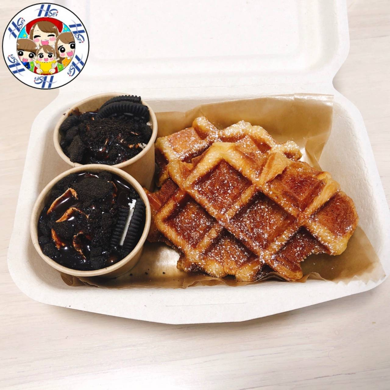 クロワッサンをワッフルしてあるので、サクッとした食感が美味しい〜❤️そして、このオレオクリームを付けて食べると、更に美味しい!!&甘くて幸せです❤️
